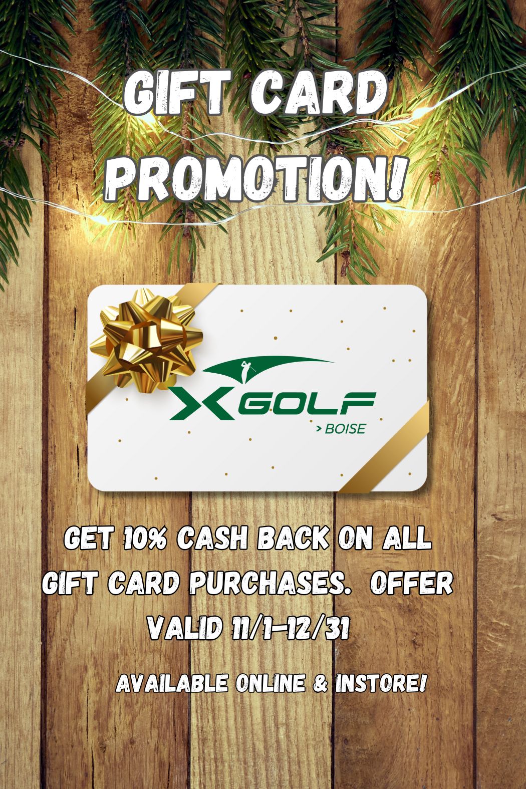 Purchase gift cards online or directly from your favorite location for your friends, family or for yourself! X-Golf gift cards may be used at any X-Golf facility. A perfect present for any occasion, whether a newbie, avid golfer or just for fun, a gift card from X-Golf will create excitement. Make someone smile today!