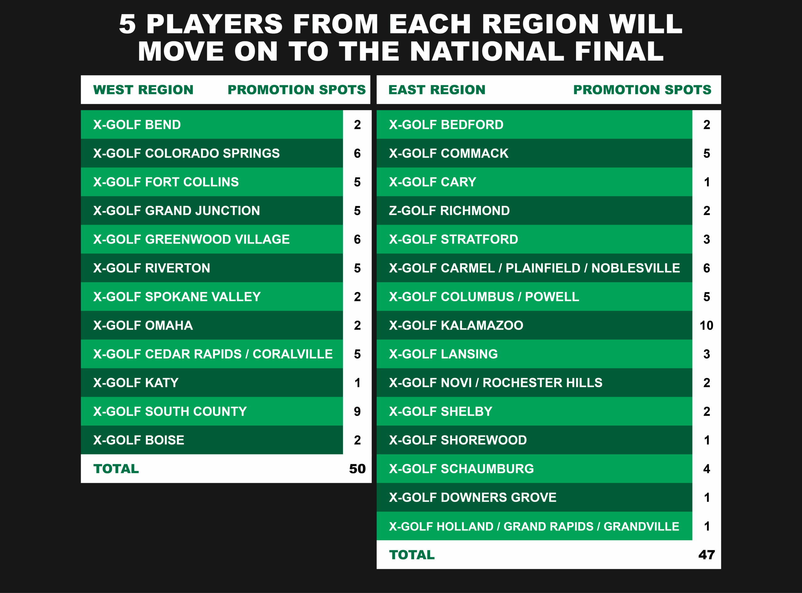 | PLACE | PLAYER NAME | X-GOLF LOCATION | NATIONAL FINAL 1 | NATIONAL FINAL 2 | TOTAL SCORE |